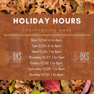 Open all week! Come see us. 🍺 Tuesday 11/25 - Black Friday themed beers being released, including an @earlspremier collab. 🗓️ Wednesday 11/26, extended hours (open at 1pm). 🍂 Thursday 11/27, open Thanksgiving 1 to 7pm. 🍻Friday 11/28, tapping special BA beers.